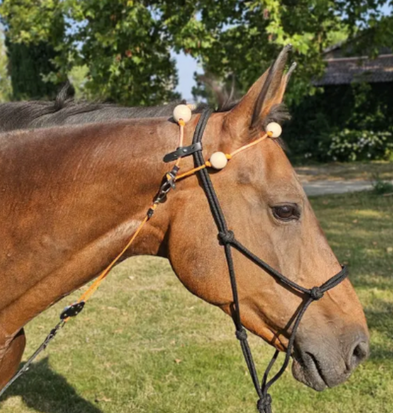 Grâce à des boules placées sur la première cervicale, le MATH stimule des points moteurs des muscles extenseurs cervicaux, incitant naturellement votre cheval à abaisser l'encolure. Les boules frontales éliminent tout sur-appui éventuel, assurant un confort maximal.