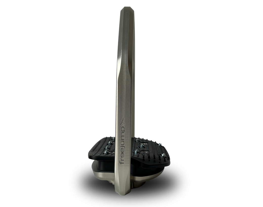 Le plancher de l'étrier AIR PURE intègre la technologie Freejump Shock Absorption, combinant un système élastomère et mécanique pour une absorption optimale des chocs. Cette technologie crée un véritable effet "coussin d'air", garantissant un confort exceptionnel.