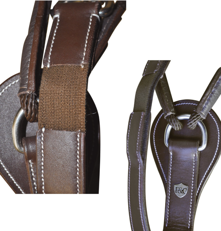 Un gogue bien pensé car une courroie permet de l’attacher au cou du cheval pour éviter qu’il ne se prenne les pieds dedans quand il baisse la tête, principalement pour le travail en longe et au marcheur.
