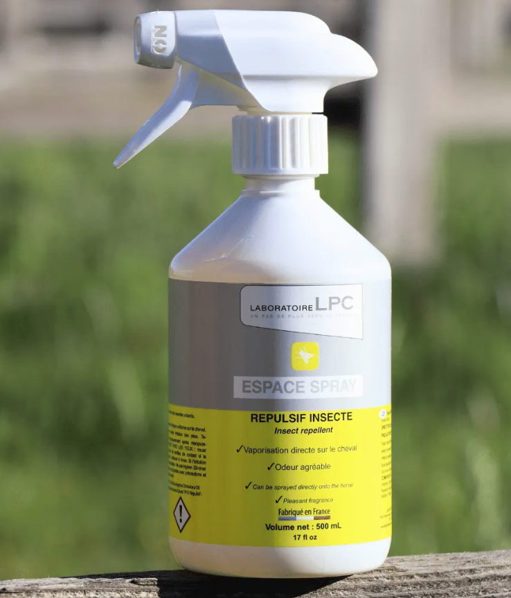 Formulé à base d’huiles essentielles, Espace Spray repousse les insectes et assure la tranquillité du cheval au pré, lors des promenades ou pendant des activités sportives.